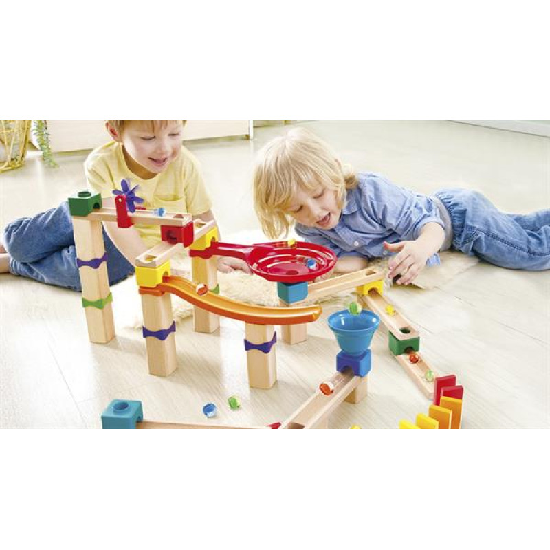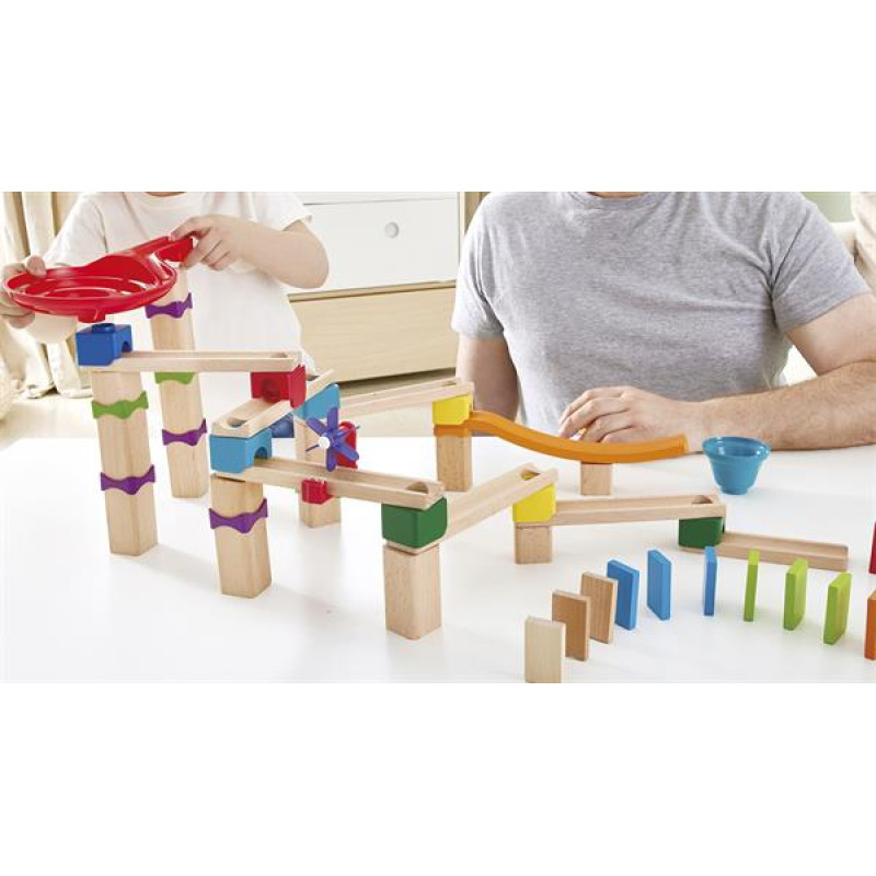 На старт! Увага! Руш! Запускайте мармурові кульки по зібраному треку. Хто ж першим зіб'є доміно? Захоплива гоночна траса від Hape складається з 81 елемента. Іграшка буде цікава дітям від 3 років. Набір сумісний з іншими наборами серії.Конструктор-лабіринт заснований на STEM-принципах навчання, розвиває мислення і творчість.Гоночна траса #8211; захопливий спосіб познайомити дітей з такими законами фізики як потенційна енергія, імпульс і гравітація. Будівництво веж і доріжок покращує зорово-моторну координацію, навички логічного мислення, навички розв'язання проблем і творчі здібності вашої дитини.Конструктор сумісний ТІЛЬКИ з іншими наборами серії Marble Run.Розмір кольорових блоків: 40х40х33, 5 мм. Ширина доріжки: 35 мм.Ігровий набір відповідає міжнародним стандартам якості EN 71 і ASTM F963. Батарейки не потрібні.