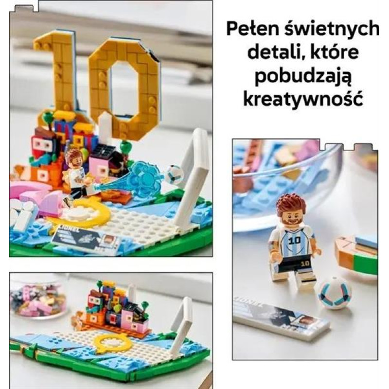 Діти вболівають за легенду футболу з набором для конструювання LEGO® Ліонель Мессі - найкращі моменти футбольних матчів (43011) для хлопчиків і дівчаток віком від 10 років.Фанати футболу отримають масу задоволення під час створення цієї колекційної моделі для демонстрації, присвяченої Мессі. Основа має форму його ініціалів і виконана в кольорах Аргентини, його національної команди, а також містить велику «10», яка є одним із його знакових номерів на футболці. Мініфігурка Ліонеля Мессі оживляє набір. Крім того, в наборі є колекційна табличка з його статистикою та іменем, а також безліч великодніх яєць, які нагадують про його життя та кар'єру. Готовий набір стає крутим предметом мерчу Мессі та футбольним декором, яким фанати можуть пишатися.Ця креативна іграшка стане чудовим спортивним подарунком для хлопчиків, дівчаток і шанувальників Мессі на дні народження та особливі події. Інструкції доступні в цифровому форматі в додатку LEGO Builder, де зіркові гравці можуть наближати, обертати збірки в 3D й відстежувати свій прогрес. Набір містить 500 деталей.