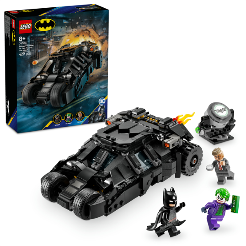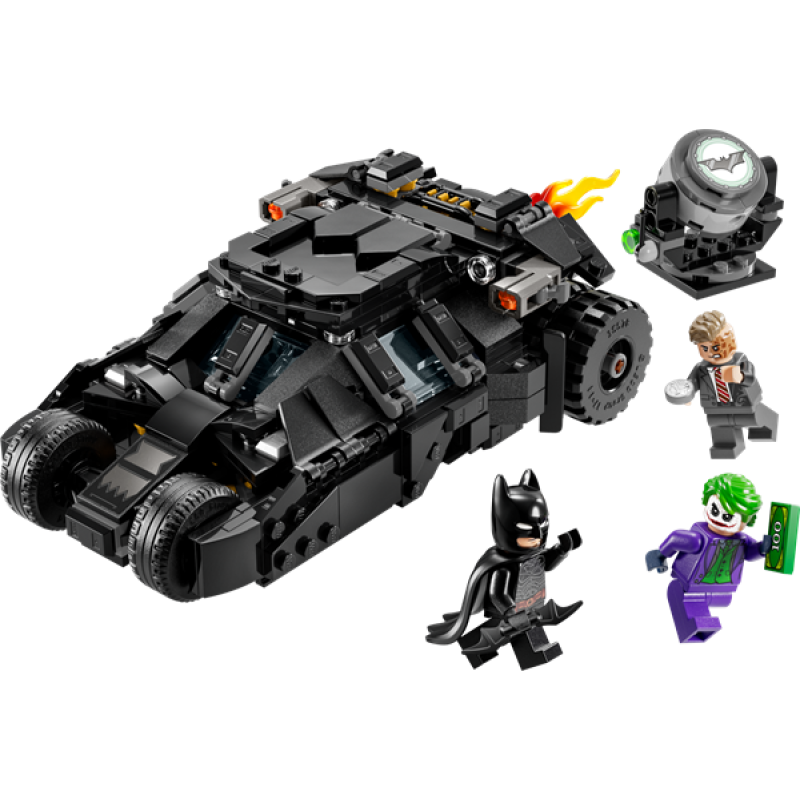 Бетмен Тумблер проти Дволикого і Джокера (76303) - це весела іграшка для дітей, які люблять Бетмена, транспортні засоби, творчість LEGO® і супергеройські пригоди. Передайте автомобільні пригоди Бетмена в руки юних супергероїв віком від 8 років завдяки цьому високоякісному набору LEGO, в якому представлений культовий Бетмобіль Тумблер із класичного фільму Темний лицар.Цей ігровий набір супергеройської серії LEGO Бетмен містить 3 популярні мініфігурки: Бетмена, озброєного Бетарангом, Джокера, який тримає пачку готівки, і Дволикого із фірмовою срібною монетою. Бетмобіль із кубиків відкривається, надаючи доступ до панелі приладів і кабіни пілота з місцем для Бетмена. Знімна деталь полум?я виступає з вихлопної труби автомобіля. Бетсигнал (не світиться) нахиляється і повертається на 360 градусів в обидві сторони. Для більших цифрових розваг, будівельники можуть масштабувати, повертати моделі в 3D й відстежувати власний прогрес за допомогою веселого, зрозумілого додатка LEGO Builder.