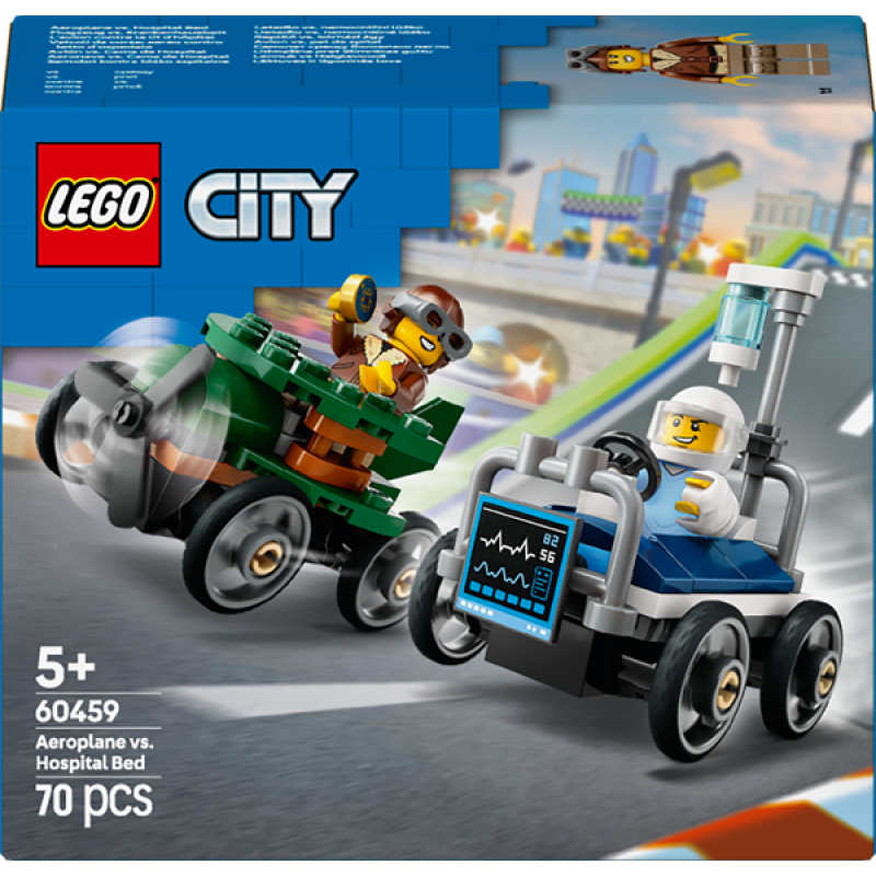 Подаруйте маленьким шанувальникам перегонів набір LEGO City «Літак проти лікарняного ліжка» (60459) для дітей віком від 5 років. Ця цікава іграшка автомобільних перегонів має 2 безмоторні транспортні засоби в наборі й 2 мініфігурки. Діти можуть виставити пілота в літаку, що злітає, проти пацієнта на напрочуд швидкому лікарняному ліжку. Хто переможе? Займайте своє місце для легендарних міських перегонів!У цьому наборі для перегонів безмоторного транспорту LEGO міститься покроковий друкований посібник зі складання. Діти також можуть насолоджуватися веселою будівельною пригодою з додатком LEGO Builder, де вони можуть масштабувати й обертати моделі в 3D, відстежувати власний прогрес, а також досліджувати й зберігати інші ігрові набори.Ігрові набори LEGO City містять круті транспортні засоби, реалістичні споруди і кумедних персонажів, які надихають на творчу гру без обмежень. Діти можуть поєднувати цей набір із безмоторним транспортом LEGO City з іншими із цієї серії (продаються окремо), щоб розширювати світ ігрових можливостей.