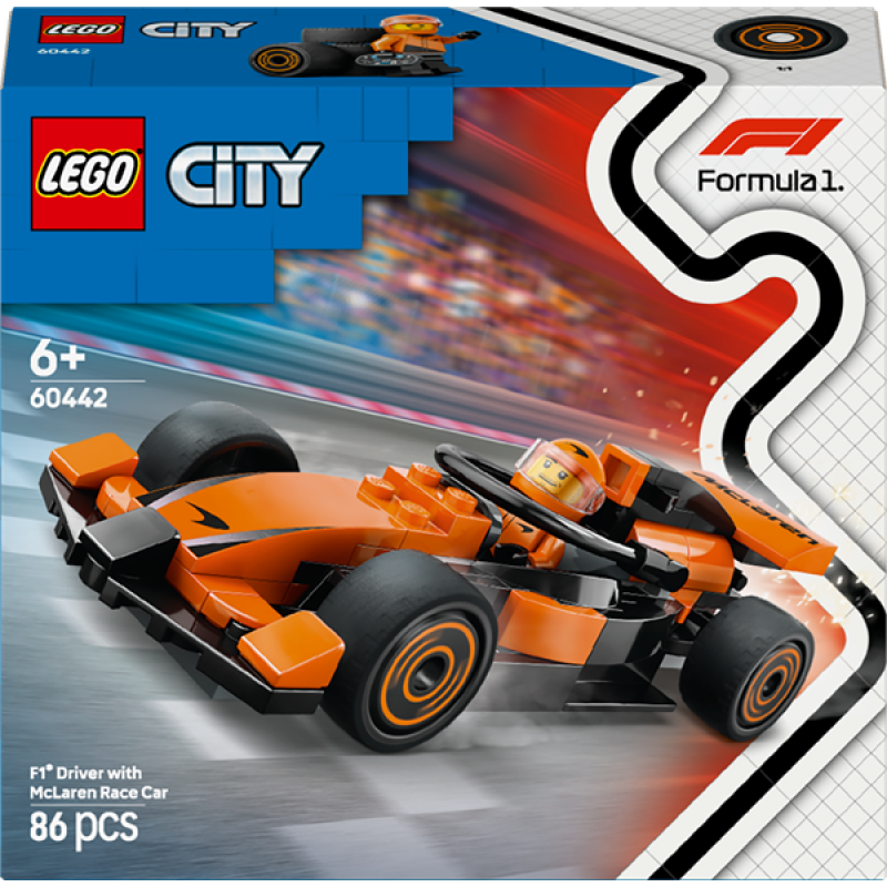 Конструктор LEGO City Пілот F1 з автомобілем для перегонів команди McLaren 86 деталей (60442)