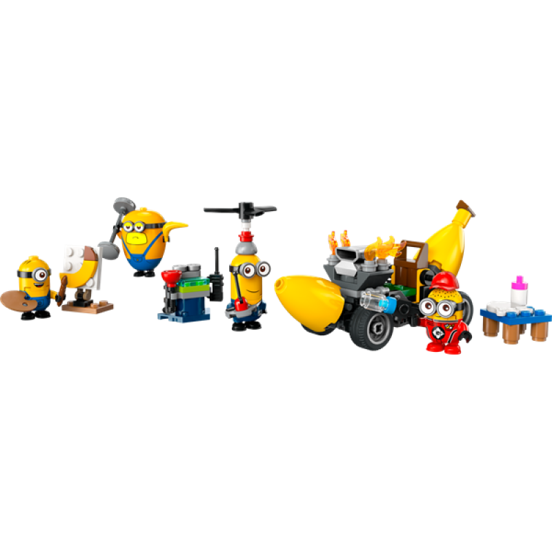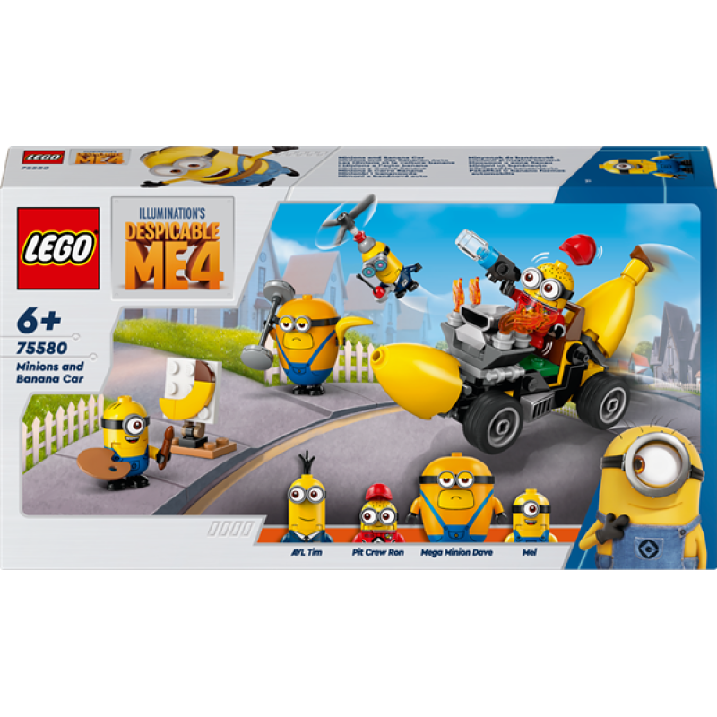 Порадуйте шанувальників Посіпак набором LEGO Нікчемний я 4 Посіпаки й банановий автомобіль (75580). Ця творча іграшка для дітей містить чотирьох Посіпак, маленьке іграшкове авто, а також аксесуари. Це веселий подарунок у вигляді іграшки з мультфільму для хлопчиків і дівчаток віком від 6 років і шанувальників Нікчемного я 4 від студії Illumination.Шукаєте набір LEGO про Посіпак, маленьке іграшкове авто або кумедний подарунок? Зверніть увагу на банановий автомобіль посіпак з водійським сидінням і знімним двигуном. До набору входять чотири фігурки Посіпак й аксесуари. Мегапосіпака Дейв може піднімати двигун в одній руці, а в іншій - штангу. Мел малює банан, а секретний агент АЗЛ, посіпака Тім, пролітає повз з лопатями пропелера на голові й пультом дистанційного керування в руці. На землі - його робоче місце, заповнене спеціальними інструментами, зокрема рентгенівськими окулярами. За сповивальним столиком чергує Рон. У нього є все необхідне спорядження, включно з пістолетом для утилізації брудних підгузків. Юні конструктори також можуть розважатися в цифровому форматі, масштабуючи й обертаючи набори за допомогою додатку LEGO Builder.
