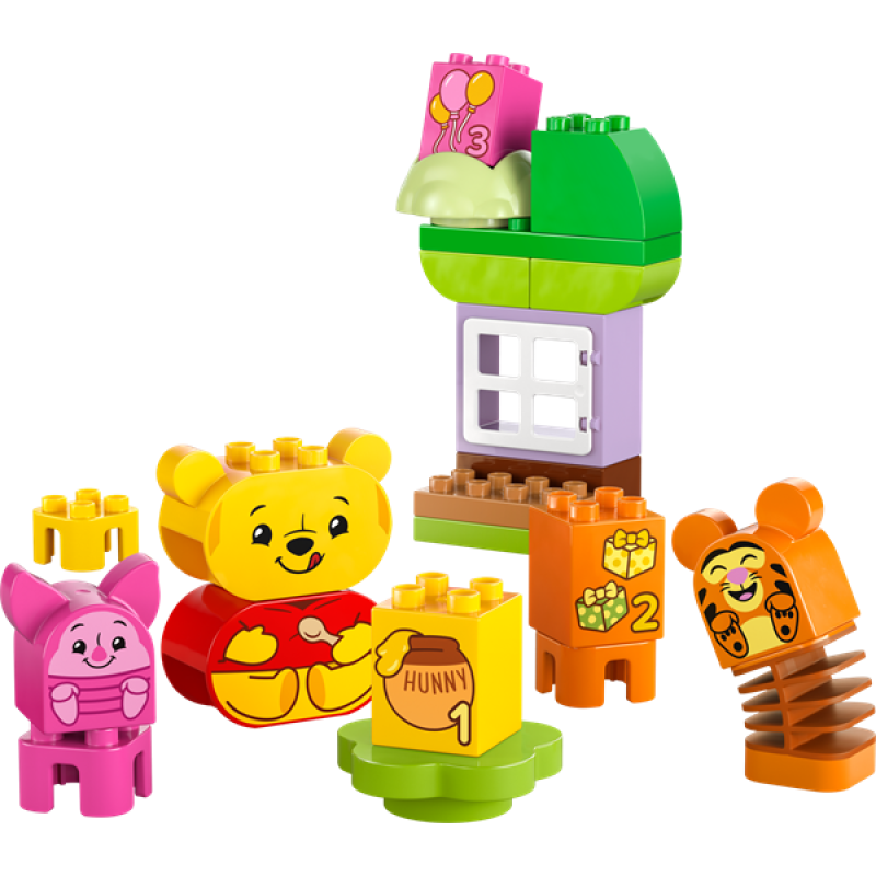 Завдяки набору LEGO DUPLO Disney День народження Вінні Пуха (10457) батьки й малюки насолоджуються творчими іграми й навчаються через гру. Цей яскравий навчальний конструктор допомагає малюкам віком від 1,5 року практикувати ранні навички, насолоджуючись творчою грою.Дошкільнята уявляють, що вони на вечірці з 3 фігурками LEGO DUPLO: Вінні Пухом, Тигриком і Пʼятачком. Кожен персонаж має двостороннє обличчя з різним виразом, що дарує безмежні творчі можливості для гри та створення історій. Ця весела функція також забезпечує соціально-емоційні навчальні заходи для малюків, оскільки вони досліджують різні емоції, які діти можуть відчувати на вечірках, від радості, відкриваючи подарунки, до дискомфорту, зʼївши занадто багато смаколиків!Цей конструктор дозволяє дітям дошкільного віку практикувати сортування кольорів, поєднуючи подарунки до дня народження з персонажами тварин. Оскільки кожен подарунок пронумерований, дошкільнята можуть навіть почати робити перші кроки у лічбі.