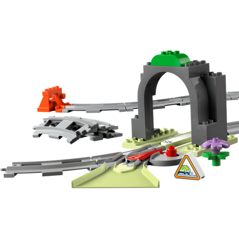Розширте пригоди малюків потягом завдяки набору додатковому набору для малюків «Залізничний тунель і колії» (10425). Дошкільнята віком від 2 років збільшують свої навчальні пригоди, додаючи тунель і додаткову колію до своїх інтерактивних наборів поїздів LEGO® DUPLO® Town (10427 і 10428, продаються окремо).Цей креативний конструктор містить тунель і колію з 10 деталей, включно з елементами воронки й двостороннього перемикача, щоб малюки могли змінювати напрямок руху потяга. Світловий кубик освітлює темний тунель, коли його активує інтерактивний потяг з наборів 10427 і 10428.Ця дитяча навчальна іграшка сприяє розвитку малюків. Подовжуючи залізничну колію через іграшковий тунель, дошкільнята вчаться орієнтуватися в просторі. Використовуючи навички вирішення проблем, щоб поєднати іграшкову колію та навички прогнозування, щоб визначити місце призначення поїзда, малюки розвивають терпіння і зосередженість, відкриваючи для себе безліч маршрутів, якими вони можуть проїхати.
