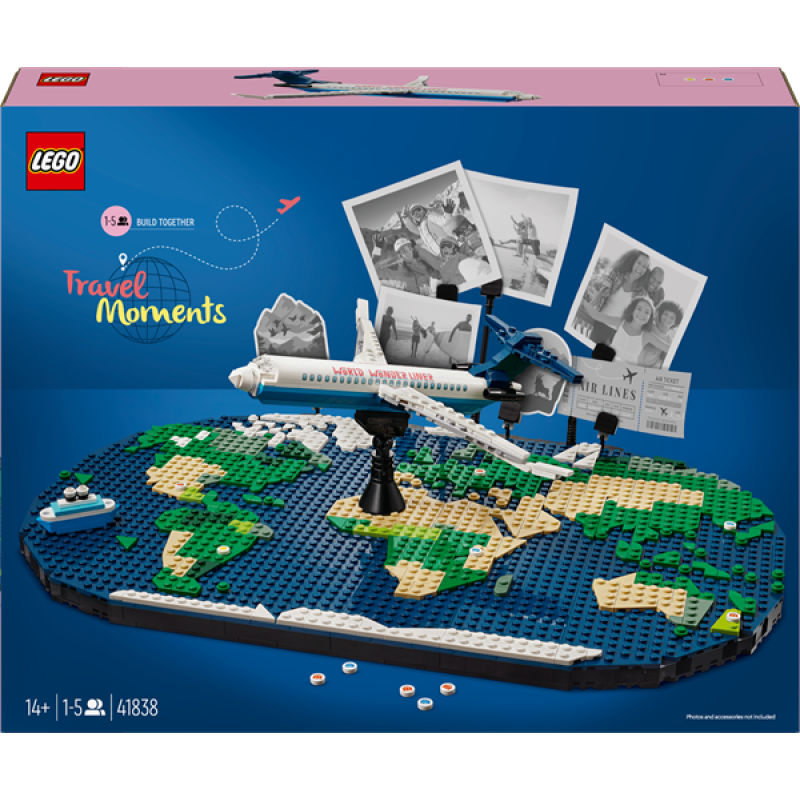 З цим іграшковим конструктором «Миті з подорожей» (41838) для всієї родини, включно з дітьми віком від 14 років, чекає творча конструкторська пригода. Цей фантастичний набір LEGO® - чудовий подарунок для мандрівників і сімей, які обожнюють пригоди. У комплект входить складана карта світу, літак, 4 мікромоделі транспортних засобів, 20 плиток локацій, 10 тримачів для фото і 5 буклетів з інструкціями. Сімʼї можуть ділитися своїми улюбленими спогадами про подорожі або мріяти про нові мандрівки, створюючи літак «Диволайнер» і мапу. Потім вони можуть її налаштувати, щоб відобразити відвідані країни або заплановані подорожі - і змінювати її з кожною пригодою! Цей ігровий набір LEGO стане важливим і наповненим памʼяттю подарунком чи сімейним заняттям на свята, щоб продовжити творчі розваги. Крім того, ви й ваші діти можете отримати максимальне задоволення від складання наборів завдяки додатку LEGO Builder, який дозволяє конструювати разом, масштабувати й обертати модель у 3D, відстежувати прогрес і зберігати набори.