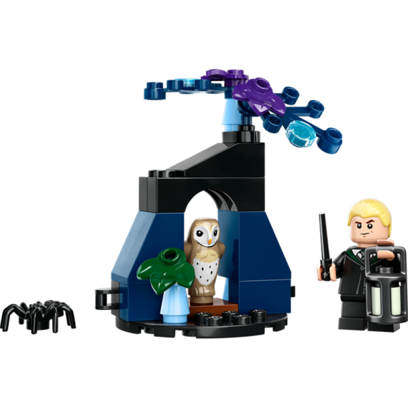 Розпаліть уяву юних шанувальників Гаррі Поттера з цією мінімоделлю Забороненого лісу, мініфігуркою Драко Мелфоя, ліхтарем, що світиться в темряві, а також фігурками сови та павука.