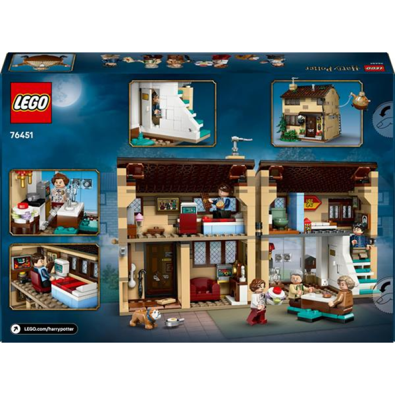 Відтворіть візит тітки Мардж до будинку за адресою Привіт Драйв, 4 з книги Гаррі Поттер і вʼязень Азкабану завдяки цьому колекційному ігровому набору серії LEGO Harry Potter (76451). Складений з кубиків будинок є детальним відтворенням будинку сімʼї Дурслі із зимовим садом, і він відкривається для легкого доступу до внутрішніх приміщень. Усередині розташовані знімний стіл у кухонній/обідній зоні, приховані двері у задній частині будинку до старої кімнати Гаррі в шафі під сходами, ґрати на вікні спальні Гаррі на верхньому поверсі, щоб розіграти його втечу, і багато інших автентичних деталей, які надихають на творчу гру.Чарівна святкова подарункова іграшка або сюрприз до дня народження для хлопчиків, дівчаток й усіх шанувальників віком від 8 років, цей фантастичний пригодницький набір містить 5 мініфігурок серії LEGO Harry Potter і фігурку собаки Ріпера. У ньому також є надута фігурка тітки Мардж, щоб відтворити кумедну сцену, де Гаррі застосовує закляття, щоб розтягнути її, як повітряну кульку, а також бокову конструкцію зі знаком «Привіт-драйв» і ліхтарним стовпом.