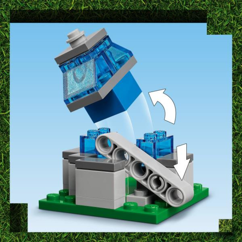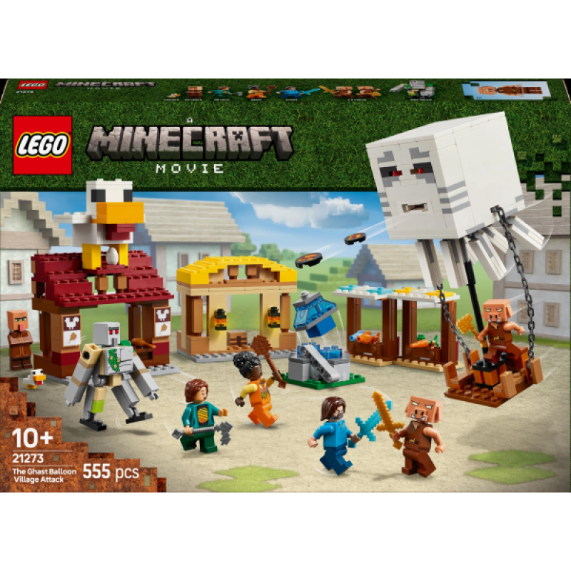 Напад на село з повітряною кулею Ґаст (21273) - це набір конструктора про відеогру, заснований на сцені з фільму Minecraft. Ця якісна дитяча іграшка від LEGO Minecraft має вибухову функцію під час атаки з повітряної кулі, що перетворює цей набір LEGO про відеоігри на чудову ідею подарунка для хлопчиків і дівчаток віком від 10 років.У наборі представлені популярні персонажі з відеогри: Стів, Наталі, Дон, 2 піґліни, повітряна куля ґаст, селянин, курча й фігурка залізного ґолема. У повітряній кулі є місце для піґлінів і є дискова рушниця. Серед села розташовані ринкові ятки, ресторан зі смаженою куркою Стіва, його реміснича хатина і фонтан, який діти можуть «підірвати» за допомогою вбудованої функції. Дах ресторану увінчаний великою моделлю курки, яка має веселу функцію «яйцекладки». Для цифрових розваг додаток LEGO Builder дає дітям змогу масштабувати, обертати моделі в 3D й відстежувати власний прогрес.