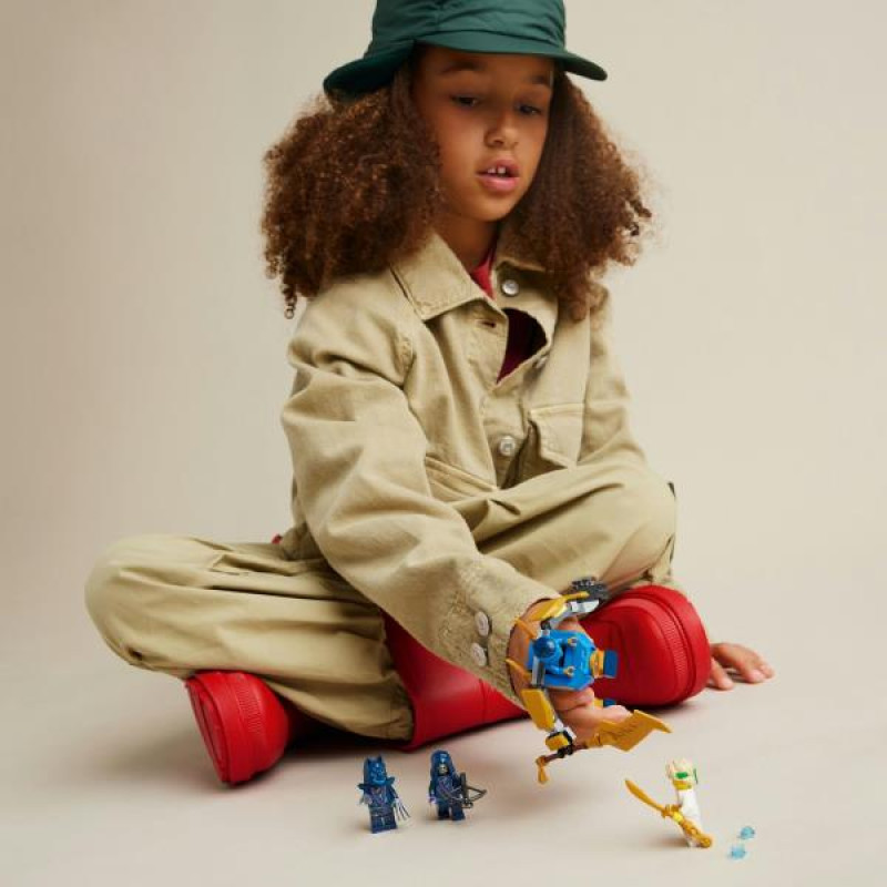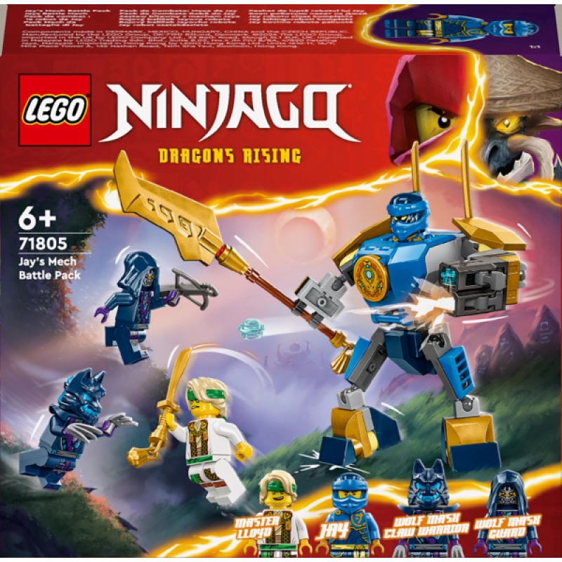 Хлопчики й дівчатка віком від 6 років можуть розігрувати гостросюжетні бойові сцени із другого сезону телесеріалу NINJAGO® Повстання драконів із цією пригодницькою іграшкою Бойовий набір робота Джея (71805). Цей дитячий конструктор про ніндзя має круту фігурку робота з рухомими руками, ногами й тулубом, який озброєний великим золотим мечем і може стріляти шипами із двох шутерів.Ця іграшка ніндзя містить чотири мініфігурки NINJAGO й безліч аксесуарів. Джей озброєний золотим мечем, а мініфігурка Майстра Ллойда має дві золоті катани. Воїн з кігтями у вовчій масці має довгі пазурі на кожній руці, а охоронець у вовчій масці - арбалет.Решта дитячих конструкторів LEGO NINJAGO у серії ніндзя включає в себе роботів, транспортні засоби й храми, щоб шанувальники могли розігрувати історії з власними героями. Кожну фантастичну іграшку можна створити завдяки додатку LEGO Builder, який допоможе вам і вашій дитині у легкій та зрозумілій будівельній пригоді. Масштабуйте, обертайте моделі в 3D, зберігайте набори й відстежуйте власний прогрес.