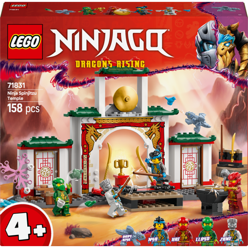 Порадуйте дітей, які люблять іграшки ніндзя, LEGO NINJAGO Храмом ніндзя Спін-джитсу (71831). Цей ігровий набір із драконами дозволяє дітям віком від 4 років відтворювати пригоди з 3 сезону NINJAGO: Повстання драконів Цей набір для сюжетної гри ніндзя ідеально підходить для гри в турнір NINJAGO, із садом, чайовнею і збройовою тренувальною зоною.Цей набір LEGO містить 4 мініфігурки NINJAGO: Зейн, Нія, Кай та Ллойд, а також іграшкового дракона Малюка Рю, щоб діти могли грати в ніндзя. Мініфігурки можна розмістити на 2 поворотних базах для епічних битв, а для додаткової ігрової цінності є великий асортимент аксесуарів: зброя ніндзя, включно з 2 мечами й 3 посохами, а також молот, птах, жаба, кубок, печиво й лист.Цей іграшковий набір ніндзя створений для дітей віком від 4 років, які відкривають для себе радість конструювання з кубиків LEGO. До пригодницького набору входить кубик для початківців - частково сконструйована основа, яка дозволяє дітям будувати швидко й впевнено.