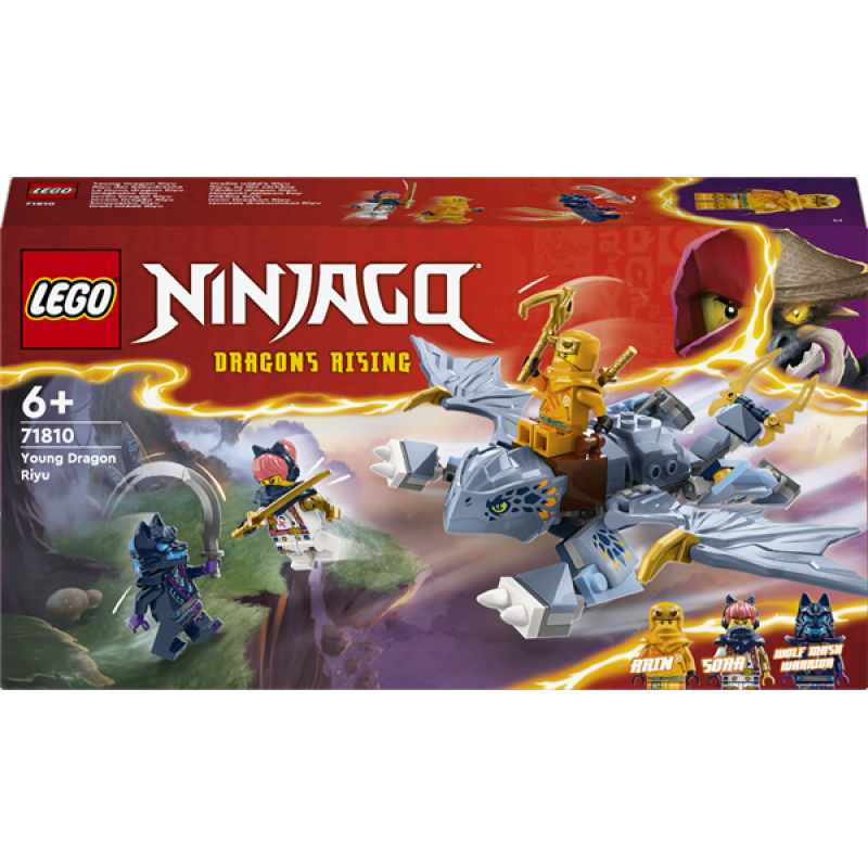 Хлопчики й дівчатка віком від 6 років можуть відтворити повітряні пригоди з другого сезону телесеріалу NINJAGO® Повстання драконів завдяки цьому ігрового набору «Молодий дракон Рію» (71810). Цей набір із дитячим іграшковим драконом містить модель молодого дракона Рію з рухомими крилами й лапами, хвостом та сідлом, аби мініфігурки могли їздити на ньому верхи.Ця ніндзя іграшка складається з трьох мініфігурок: Арін, озброєного альпіністським гаком і катаною, Сори з катаною та лиходія воїна у вовчій масці з мечем. Діти мають усе необхідне, щоб уявити себе воїном-ніндзя та розіграти гостросюжетні битви.Серія дитячих конструкторів LEGO® NINJAGO включає роботів, транспортні засоби й храми для захопливих пригодницьких ігор. Кожен бойовий набір можна створити завдяки додатку LEGO Builder, який допоможе вам і вашій дитині у легкій та зрозумілій будівельній пригоді.