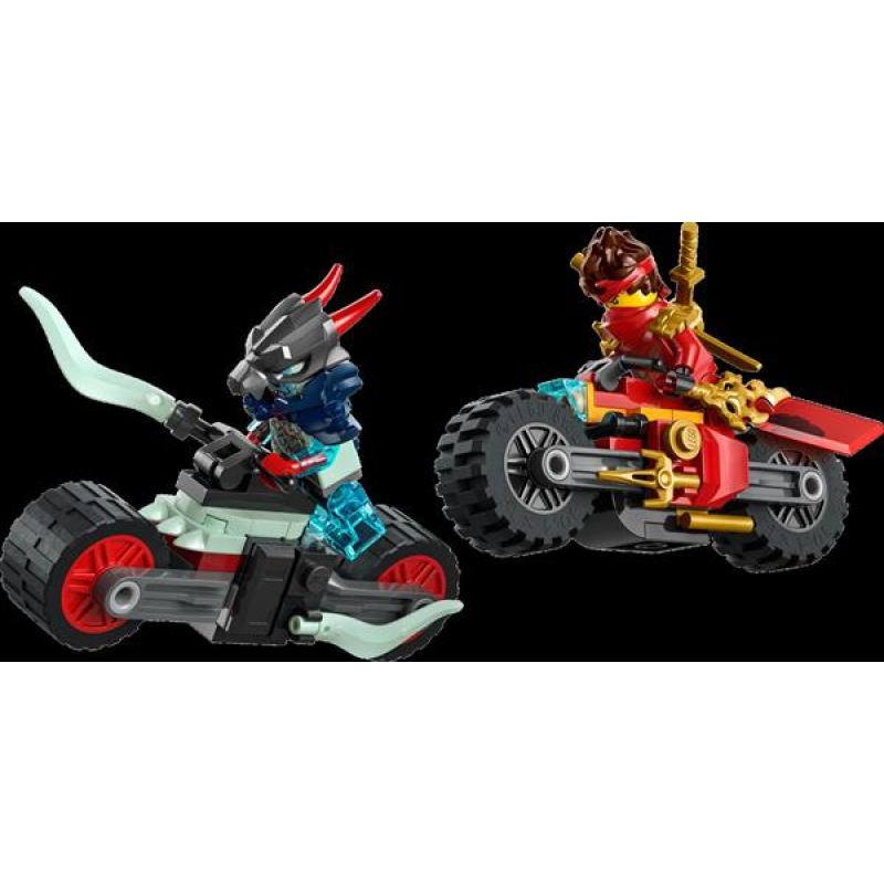 Ігровий набір «Швидкісні перегони Кая на мотоциклі» (71838) дозволяє хлопчикам і дівчаткам віком від 6 років відтворювати динамічні сцени з 3 сезону серіалу NINJAGO: Повстання драконів. Насичений пригодами набір іграшкових змагань на мотоциклах містить 2 іграшкові мотоцикли ніндзя з рухомими колесами: мотоцикл для перегонів Кая, прикрашений 2 кинджалами, і демонічний мотоцикл лихого Примарного Розвідника-дракона.Набір транспортних засобів ніндзя містить 2 мініфігурки NINJAGO для поїздок на мотоциклах: Кая, який озброєний зʼясувальним клинком і 2 золотистими катанами, а також Примарного Розвідника-дракона з мечем, тому діти можуть насолоджуватися чудовою творчою грою самостійно або з друзями, влаштовуючи битви добра проти зла.Серед дитячих наборів конструкторів й іграшок серії LEGO NINJAGO є дракони, транспортні засоби й храми, щоб шанувальники могли розігрувати сюжетні пригоди разом з героями. Кожен ніндзя-набір можна створити завдяки додатку LEGO Builder, який допоможе вам і вашій дитині у легкій та зрозумілій будівельній пригоді. Набір містить 79 деталей.