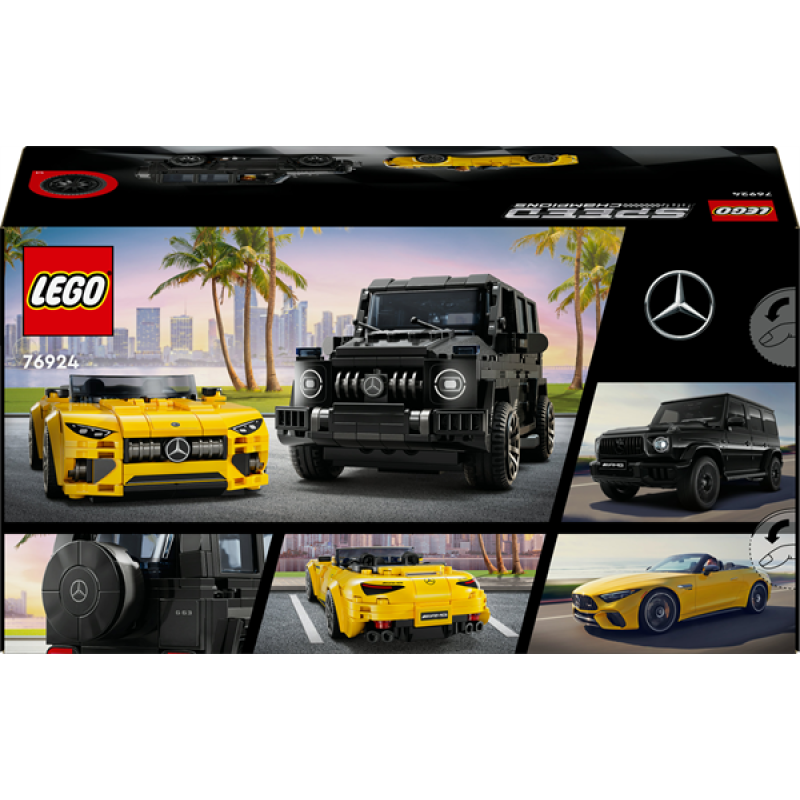 Хлопчики й дівчатка віком від 10 років тепер можуть володіти цим чудовим подвійним набором конструктора LEGO® Speed Champions з моделями AMG G 63 і AMG SL 63 (76924). Цей набір LEGO із 2 стильними іграшковими моделями автомобілів ідеально підходить для дітей, шанувальників Mercedes, дорослих колекціонерів. Вони можуть складати і демонструвати моделі, розігрувати перегони на автомобілях.Чорний позашляховик Mercedes AMG G 63 і жовтий родстер з відкидним верхом AMG SL 63 мають автентичні деталі дизайну реальних версій, включно з передніми решітками, капотами, елементами інтерʼєру й знаменитою лівреєю Mercedes. Кожна іграшка Mercedes також має мініфігурку водія, яку діти можуть посадити за кермо і насолоджуватися перегонами на треку.Набори конструкторів LEGO Speed Champions дозволяють дітям і палким шанувальникам автомобілів створювати моделі найвідоміших у світі транспортних засобів. Іграшкові машини LEGO можна створити за допомогою друкованої інструкції або додатку LEGO Builder, який супроводжуватиме вас і вашу дитину в легкій і зрозумілій цифровій будівельній пригоді.