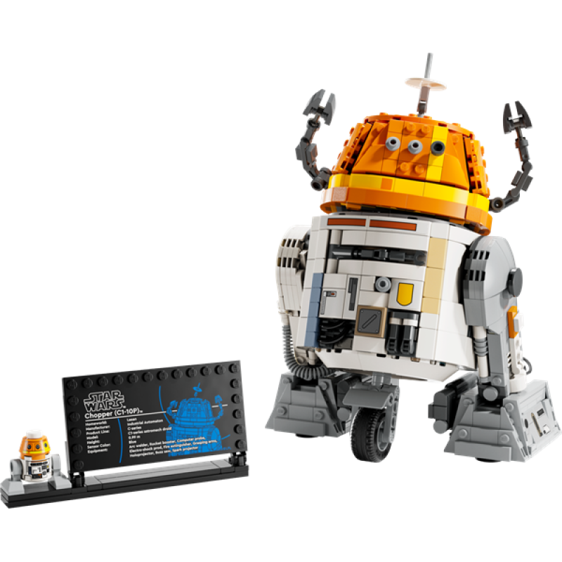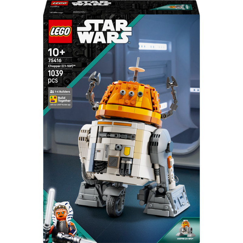 Створіть веселу модель чарівного дроїда-астромеханіка Чоппера (C1–10P) із конструктором моделі серії LEGO Star Wars (75416) для дітей. Чарівний подарунок до дня народження чи свята хлопчикам, дівчаткам й усім шанувальникам віком від 10 років, цей конструктор фігурки Чоппера, що зʼявляється серіалі Зоряні війни: Асока, має безліч реалістичних деталей. Перемістіть важіль на спині, щоб дистанційно активувати його культові рухи голови, порухати руки й кінцівки, витягнути інструмент з грудей тощо. Руки Чоппера і його центральне колесо відʼєднуются, тому його можна розташувати так, ніби руки й колесо втягнуті в тіло.Цей колекційний набір для складання і демонстрування серії LEGO Star Wars має LEGO фігурку дроїда Чоппера стандартного розміру, яку можна розмістити на підставці поруч з інформаційною табличкою Чоппера, щоб завершити яскраву модель.Складайте конструктор разом із друзями й родиною - додаток LEGO Builder дарує веселий досвід співпраці, складаючи цей набір