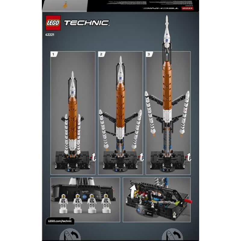 Розпочніть подорож відкриттів із набором «Ракета із системою космічного запуску NASA Artemis» (42221) для хлопчиків і дівчаток віком від 9 років. Навчальний набір LEGO® Technic демонструє 3 окремі етапи запуску ракети. Поверніть ручку, щоб побачити, як твердопаливні ракетні прискорювачі відокремлюються від центрального ступеня, який потім також від'єднується. Продовжуйте обертати, щоб спостерігати за відокремленням верхнього ступеня з його двигунним модулем, космічним кораблем Orion і системою аварійного переривання польоту.Цей набір для складання ракети був розроблений у співпраці з NASA та ESA й дозволяє дітям дослідити систему запуску, яка виводить космічний корабель Orion на місячну орбіту. Він включає 4 нанофігурки космонавтів, цікаві деталі у вигляді синього полум'я, а також інформаційну панель для створення привабливої експозиції.Цей набір для конструювання LEGO Technic стане чудовим подарунком для любителів космосу. З додатком LEGO Builder діти можуть будувати більш упевнено: масштабувати, обертати в 3D й відстежувати прогрес за допомогою простих цифрових інструкцій. Набір містить 632 деталі.