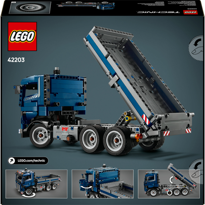 Діти віком від 9 років можуть створювати нескінченні пригоди на будівельному майданчику завдяки іграшковому самоскиду LEGO Technic (42203). Цей набір із синім іграшковим транспортним засобом у вигляді вантажівки дозволяє дітям віком від 9 років уявити напружений робочий день за керуванням самоскидом. Скеруйте вантажівку на місце, а потім поверніть регулятор збоку вантажівки, щоб перекинути кришку. Відкрийте двері, щоб зазирнути всередину кабіни, а потім направте самоскид на наступне завдання на будівельному майданчику.Набори транспортних засобів серії LEGO Technic мають реалістичні функції, щоб познайомити юних конструкторів LEGO зі всесвітом інженерії. Цей дитячий конструктор - цікавий подарунок до дня народження чи з будь-якої нагоди дітям, які захоплюються автомобілями LEGO чи іграшковими будівельними вантажівками.Діти можуть насолоджуватися легкою та інтуїтивною будівельною пригодою за допомогою додатку LEGO Builder, де можна масштабувати й обертати моделі в 3D, зберігати набори й відстежувати прогрес.