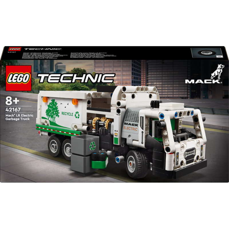 Надихайте дітей, які обожнюють транспортні засоби, замислитися про зелену енергію і збереження міста чистим з допомогою цього іграшкового сміттєвоза Mack® LR Electric серії LEGO® Technic (42166) для віку від 8 років. Ця іграшкова вантажівка для переробки сміття натхненна надсучасним електросміттєвозом Mack і має реалістичні функції.Зібравши модель, можна насолоджуватися творчою грою, досліджуючи можливості вантажівки. Дверцята відчиняються, і діти можуть використовувати деталі шестерні у верхній частині кабіни, щоб спрямувати вантажівку в потрібне місце. Як і справжнє авто, ця модель має бічний навантажувач, щоб захоплювати, піднімати й перекидати сміттєві баки. Діти можуть грати в сюжетні ігри, вивозячи й розвантажуючи сміття. До набору входять сміттєві баки й сміттєві деталі, які заохочують до творчої гри.Набори LEGO Technic мають реалістичні функції, які знайомлять юних будівельників LEGO з інженерією. Подаруйте дітям корисну будівельну пригоду з додатком LEGO Builder. У ньому вони можуть масштабувати й обертати моделі в 3D, а також відстежувати прогрес.