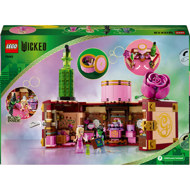 Відправляйте дівчаток і хлопчиків віком від 8 років до улюбленої сцени з фільму Зла завдяки чудовому подарунку для дітей «Кімната Ґлінди й Ельфаби» (75683). Ця колекційна іграшка відтворює культову сцену з фільму, де розквітає дружба дівчаток.Ця іграшкова модель складається з красивої складаної скрині, яка відкриваючись перетворюється в деталізований ігровий набір із кімнатою у ляльковому будиночку університету Шиз. Наповнений автентичними аксесуарами, цей ігровий набір у вигляді лялькового будиночка дозволяє дітям відтворити сцену, де Ґлінда обіцяє зробити Ельфабу «популярною». Як і у фільмі, 2 мініляльки одягнені в піжами, але також мають 2 денні вбрання для додаткових веселощів від перевдягання.Діти сканують прихований QR-код набору, щоб отримати доступ до унікального контенту LEGO® Wicked і підспівують «популярному» гіту з фільму. Розташувавши мініляльок на підставках, що обертаються, діти змусять персонажів «танцювати» під музику! Коли вистава закінчиться, зачиніть двері в кімнату й перетворіть її на скриню Ґлінди, яку можна замкнути на ключ!