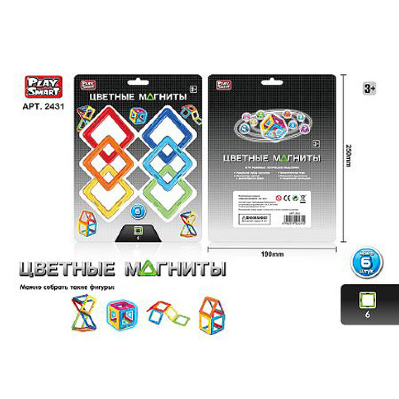 Конструктор магнітний PLAY SMART "Кольорові магніти" 6 дет.лист 25*19 2431
