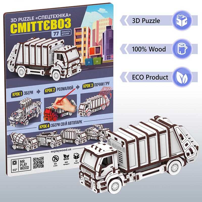 Конструктор Mr.Playwood — Сміттєвоз механічний дерев'яний