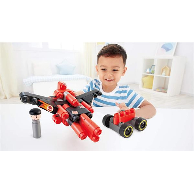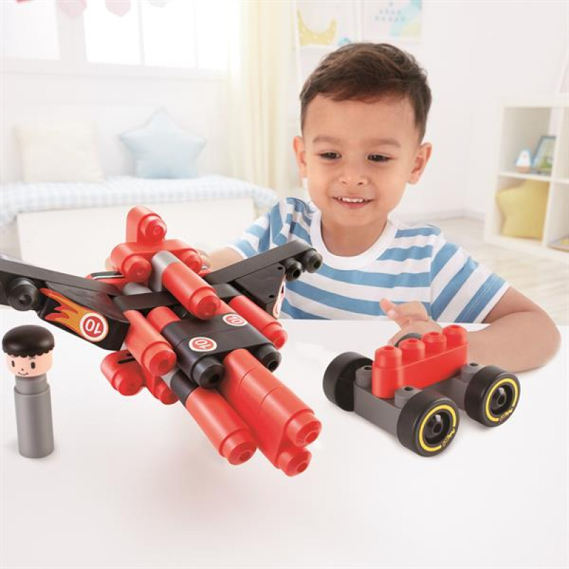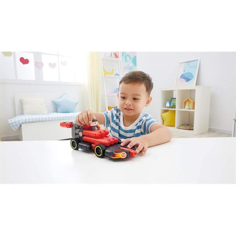 З різнокольорових блоків цього конструктора Hape PolyM дитина зможе зібрати великий гоночний автомобіль з пілотом. В набір входить 2 колісні пари, фігурку водія, інструкцію по збірці і комплект наклейок. В наборі 31 деталь. Будівельні блоки виготовлені з гнучкого пластику, їх можна мити в посудомийній машині. Рекомендований вік: від 2 років.Особливості конструктора:Блоки виготовлені з гнучкого матеріалу і мають закруглені краї, зручні для дитячих рукДеталі можна комбінувати з іншими наборами PolyMВ комплекті є набір наклейок для пілота та для автівки.Конструктор можна мити в посудомийній машині.Дитячий конструктор Hape PolyM Гоночний автомобіль (760020) розроблений в Німеччині і відповідає міжнародним стандартам EN 71 і ASTM F963.