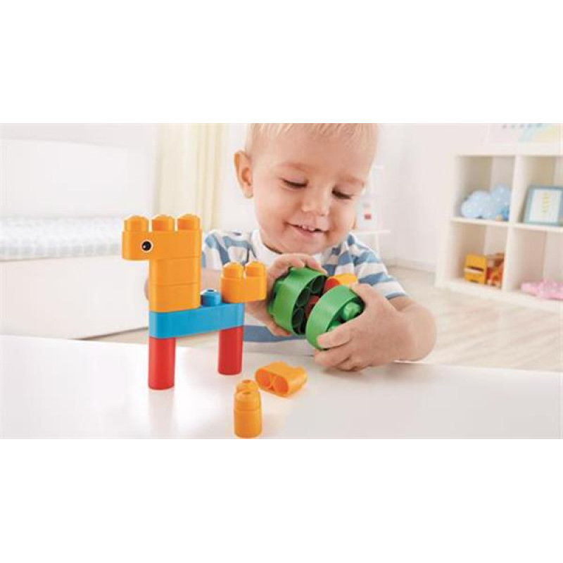 З пластикових блоків дитячого конструктора Hape PolyM Птахи та Звірята дитина зможе зібрати 3 різних варіанти кумедних птахів або фігур, цікавих тварин, конструкцій і споруд. Такий ігровий набір буде цікавий як хлопчикам, так і дівчаткам від 1,5 року і старше. У набір входить 13 будівельних блоків та наклейки з очима.Особливості конструктора PolyM:Елементи конструктора із закругленими краямиЗроблений з якісного пружного пластикуМожна мити водою і в посудомийній машині.Всі дитячі конструктори Hape PolyM сумісні між собою і виготовлені відповідно до міжнародних стандартів EN 71 і ASTM F963