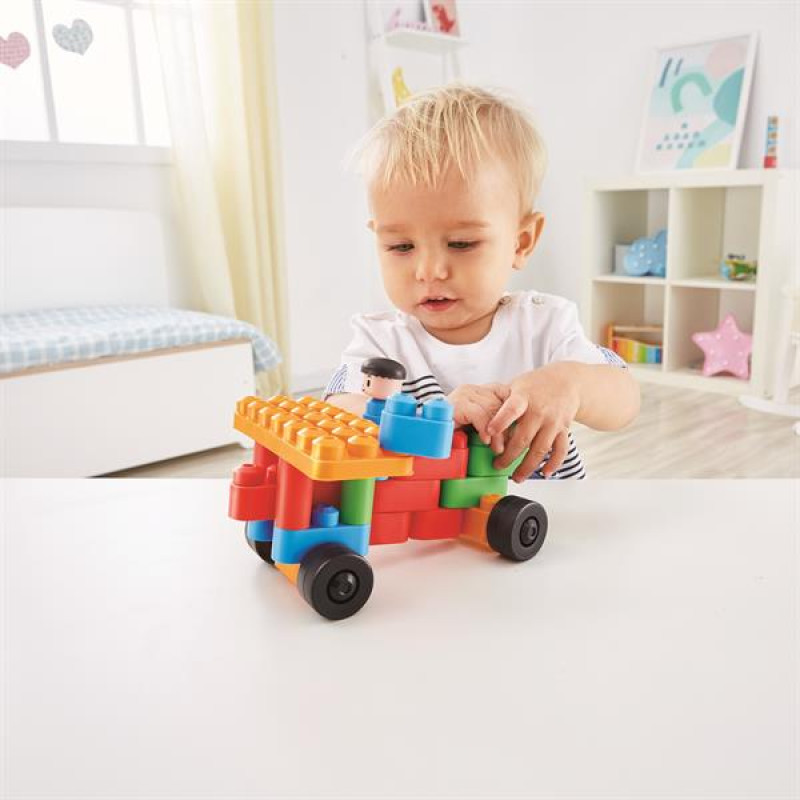 Стартовий набір конструктора Hape PolyM складається з 25 різних будівельних блоків. У комплект входить 2 пари коліс і смішний чоловічок. Підійде для хлопчика і для дівчинки від 1,5 року і старше.Особливості Конструктора PolyM:Блоки конструктора мають закруглені країМатеріал виготовлення #8211; пластикМожна мити в посудомийціКонструктор відповідає міжнародним стандартам якості EN 71 і ASTM F963.Усі дитячі набори PolyM сумісні один з одним.