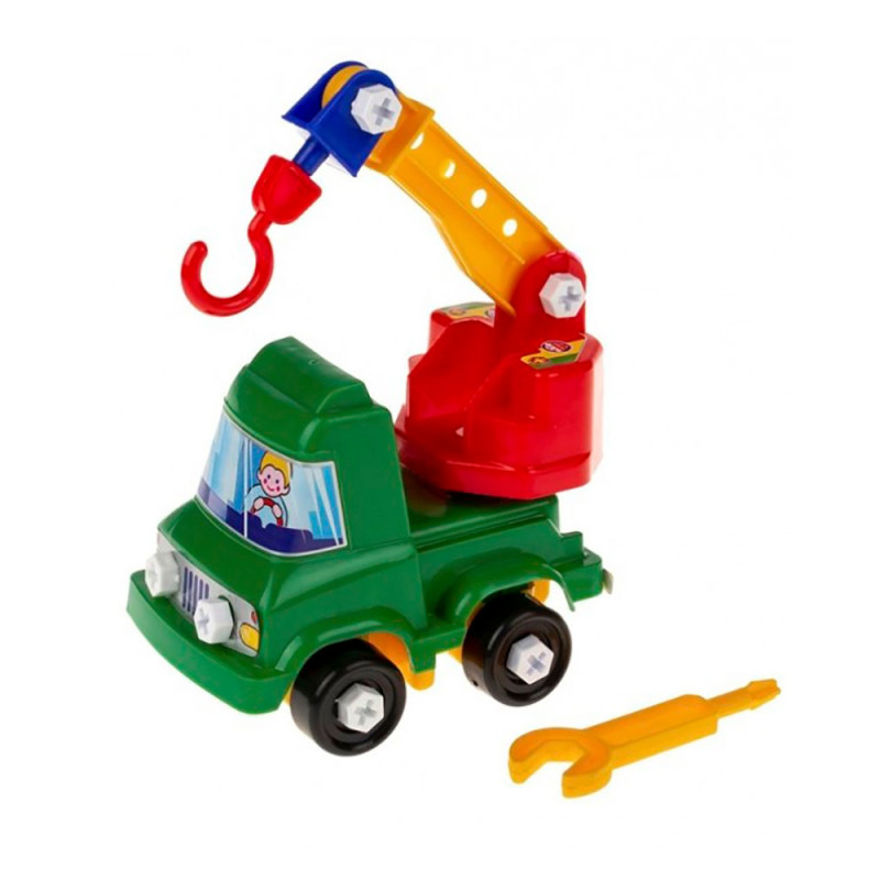 Конструктор-скрутка Кран - конструктор, що складається з невеликої кількості великих різнокольорових деталей, які легко з'єднуються між собою за допомогою гайкового ключа і гвинтиків в іграшковий екскаватор. Конструктор виготовлений з якісних матеріалів. Виробник може змінювати колірну гамму товару без попередження. Наявність кольорів уточнюйте у менеджера компанії.