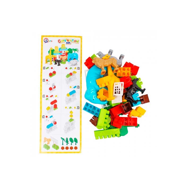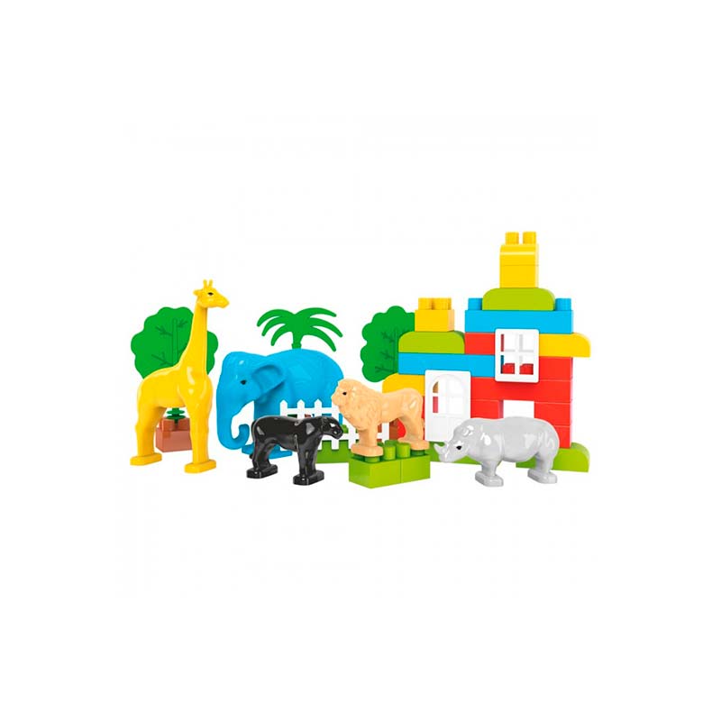 Малюк може створювати безліч унікальних конструкцій, поєднуючи будівельні деталі з фігурками тварин, що робить гру ще цікавішою та пізнавальною. Кожна фігурка виконана з увагою до дрібниць, щоб дитина могла відчути себе справжнім дослідником. Дерева допоможуть створити реалістичний ландшафт, вікна та двері — побудувати будівлі, а паркан — облаштувати вольєри для тварин. У наборі також є яскрава покрокова інструкція.