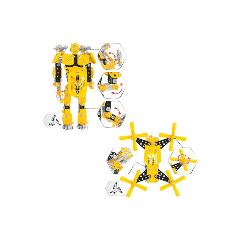 Набір не тільки розвиває технічні здібності, але й дозволяє дітям проявляти фантазію, вигадуючи сценарії для власної захоплюючої пригоди. Металеві елементи гарантують міцність та довговічність конструкцій.