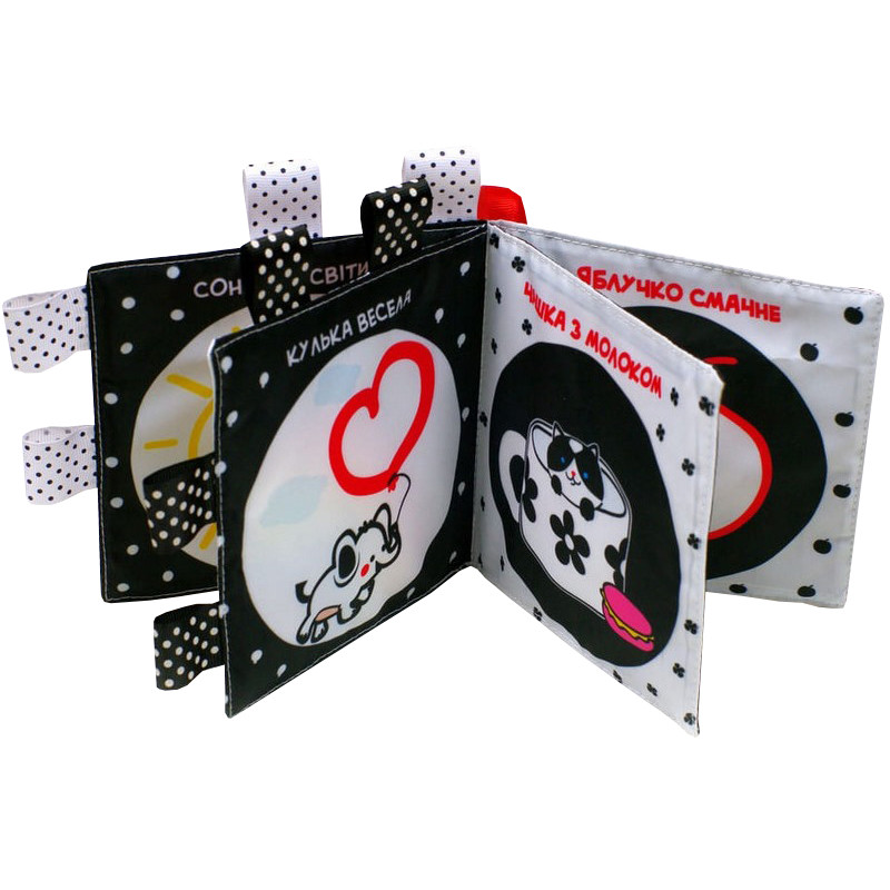Дослідження показують, що немовлят, віком від 0 до 6 місяців, найбільш цікавить контрастні, чорно – білі картинки. При розгляді сторінок таких книжок, дитина більш часу проводить на животику, що дуже добре для травлення. Книжка розвиває дрібну моторику, слухове та зорове сприйняття.