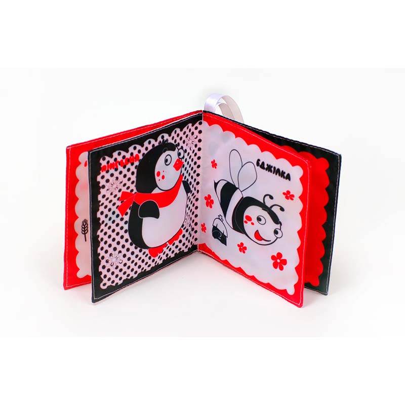 Це легкі, міцні контрастні книжки з тканини розроблені спеціально для немовлят. Виготовлені з щільної, органічної тканини з використанням органічних фарб, безпечні для маленьких рученят, їх можно стискати, гризти, обіймати.