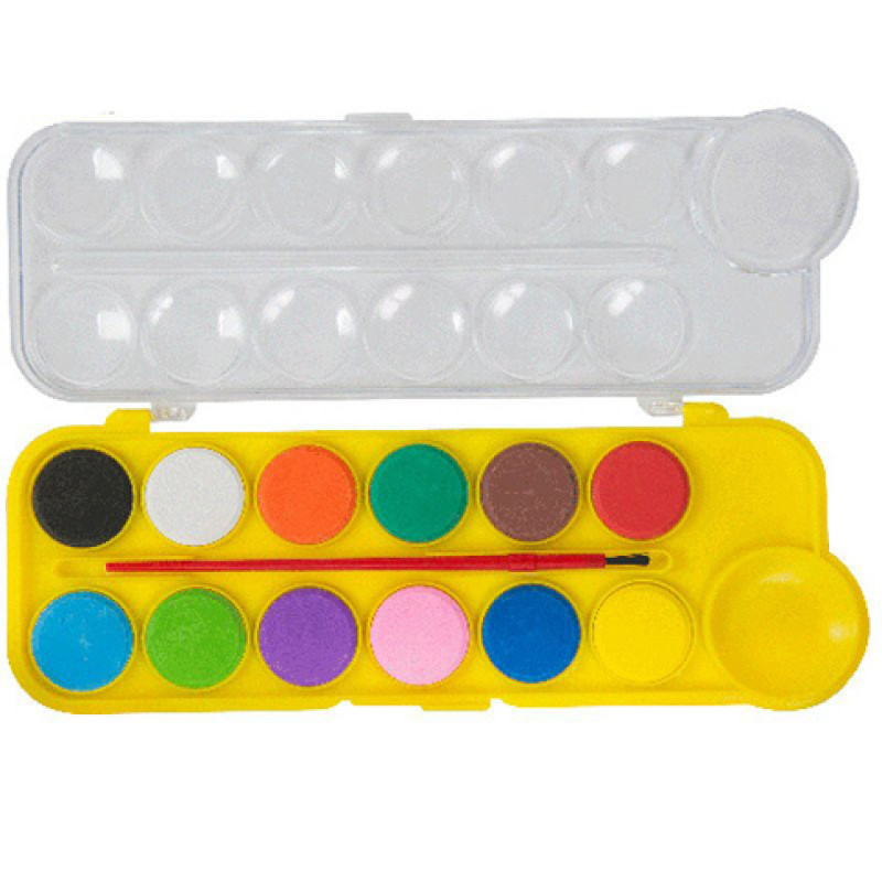 Фарби акварельні з жовтим пензлем "KIDS Line" 12 кольорів ZB.6559-08