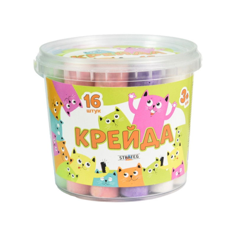 В цьому пластиковому контейнері ви знайдете крейду 16 штук. Ними можна малювати практично на будь-якій поверхні. Крім того, контейнер має зручну форму та легко відкривається, що дозволяє швидко та комфортно використовувати крейду.