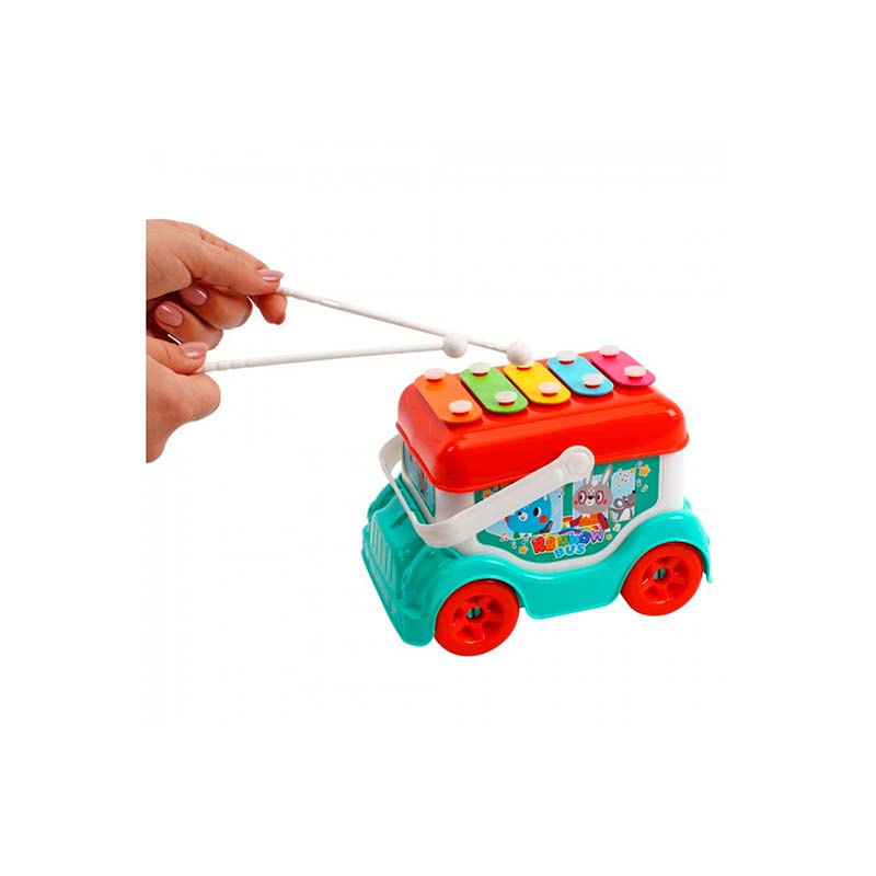 Кольорова інструкція з мелодією популярної пісні "Jingle Bells" стане в нагоді щоб вивчити свою першу мелодію. Міцна конструкція, розмір та зручна ручка автобуса-ксилофону дозволяють брати його з собою на прогулянки або використовувати вдома, розважаючи малюка на майданчику чи в дитячій кімнаті.
