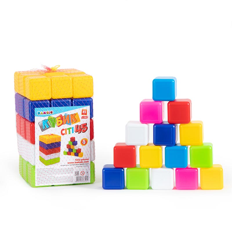 Дитячий набір «Кубики Сіті 45» складається з 45 яскравих пластикових кубиків, які чудово підходять для ігор і розвитку дітей молодшого віку.