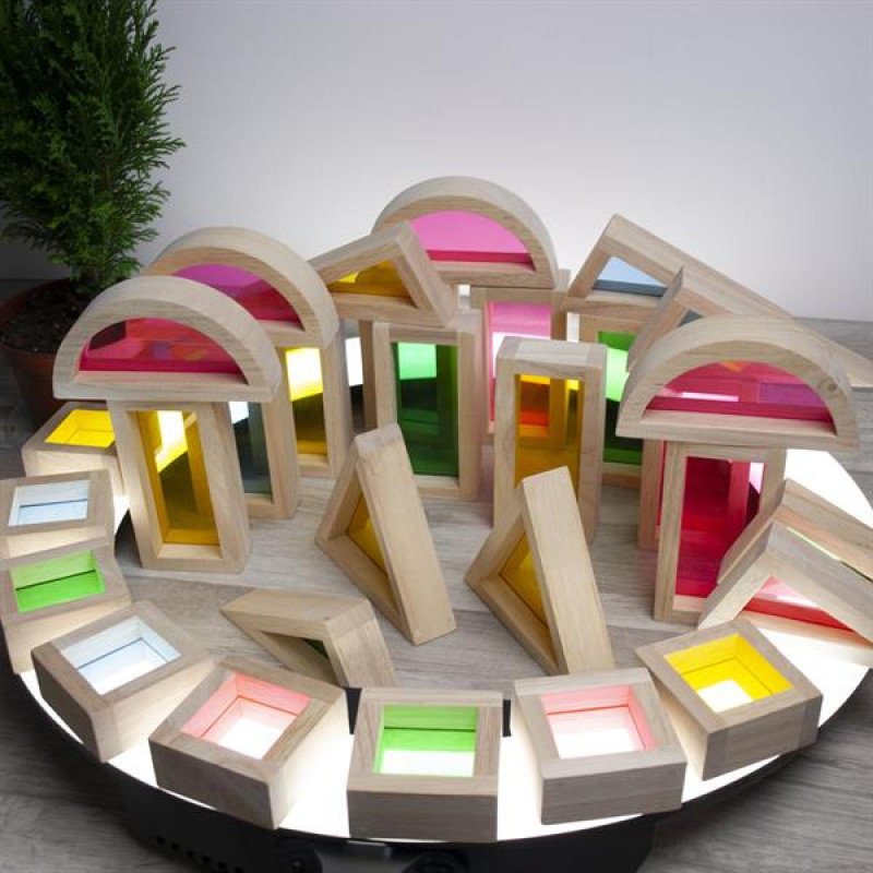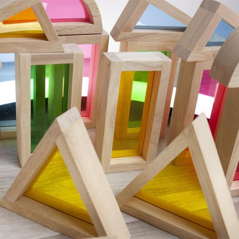 Кубики Guidecraft Block Play Велика веселка (30 шт.) - розвиток і STEM-навчання!Відкрийте світ будівництва та кольорів із набором незвичних кубиків Guidecraft Block Play Велика веселка (G3016). Цей унікальний комплект із 30 будівельних блоків ідеально підходить для розвитку дітей від 2 років, поєднуючи гру з навчанням.Особливості набору Guidecraft G3016Різноманітність форм і кольорів: до набору входять 10 прямокутників, 8 квадратів, 4 півкола (півмісяця), 2 великих і 6 маленьких трикутників. Усі блоки мають рами з масиву дерева та прозорі пластикові вставки чотирьох яскравих кольорів: синього, червоного, жовтого та зеленого.Оптимальний розмір: кожен блок має розміри 14х7х3,5 см, що робить їх зручними для маленьких ручок і дозволяє створювати стійкі конструкції.Всебічний розвиток: гра з кубиками сприяє покращенню координації рук і очей, розвитку зорового сприйняття, допомагає у вивченні кольорів і формуванні математичних навичок.Відповідає методиці STEM: набір чудово підходить для занять за методикою STEM (наука, технологія, інженерія, математика), заохочуючи дітей до експериментів, вирішення задач і логічного мислення.Купити кубики Guidecraft Block Play Велика веселка (G3016) - це інвестувати у творчий та інтелектуальний розвиток вашої дитини, надаючи їй якісний інструмент для захопливого навчання та створення безлічі конструкцій!