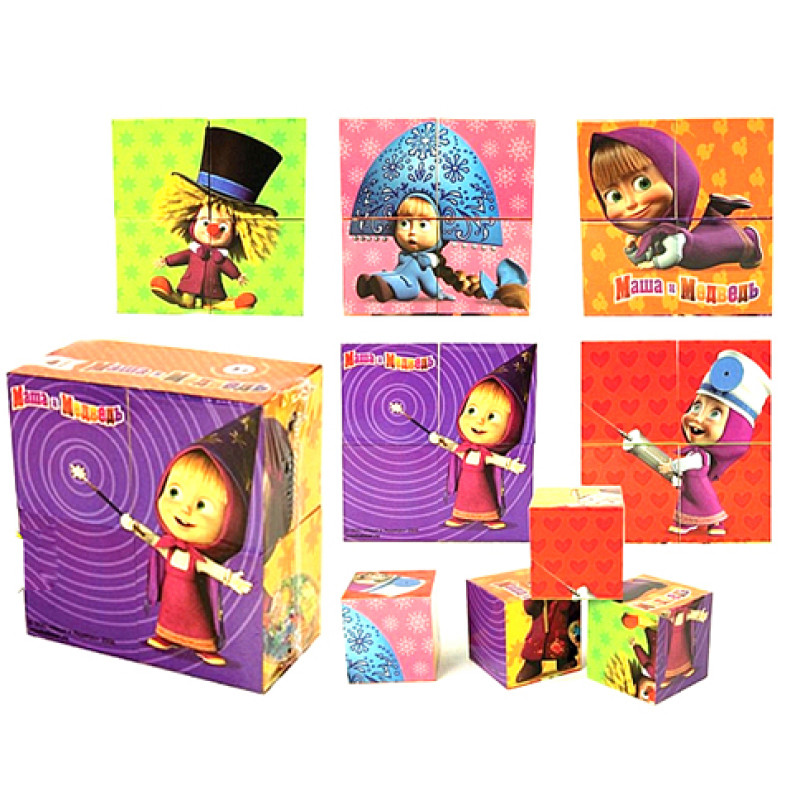 Кубики MM-904 (480шт/4) "Маша і Ведмідь" пластик, в слюде.8,5*4*8,5см
