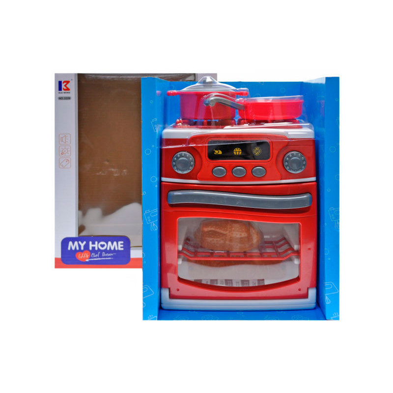 Кухонна плита озвучена - дитяча кухонна плита оснащена світловими і звуковими ефектами. На плиті розташовуються кнопочки і важелі, на які можна натискати під час гри. У наборі: каструля, іграшкова курка, сковорода. Розмір: 22*15*29 см.