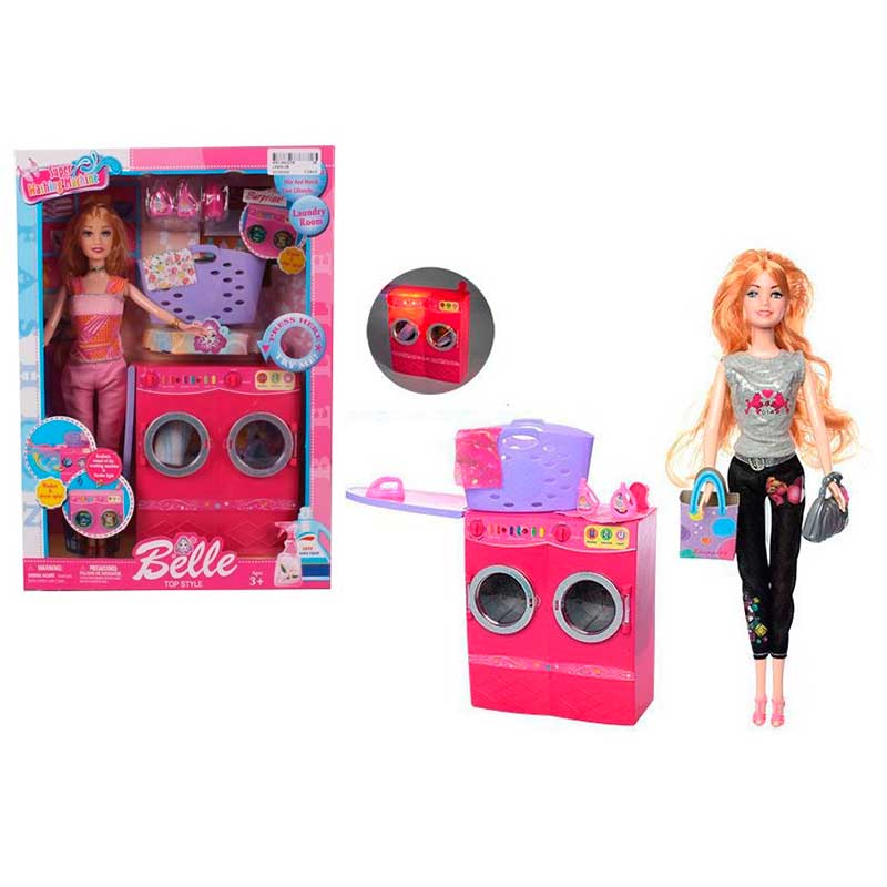 Лялька 2 види, світло, пральна машинка, кошик д/білизни, аксесс, в кор.34*7*24см