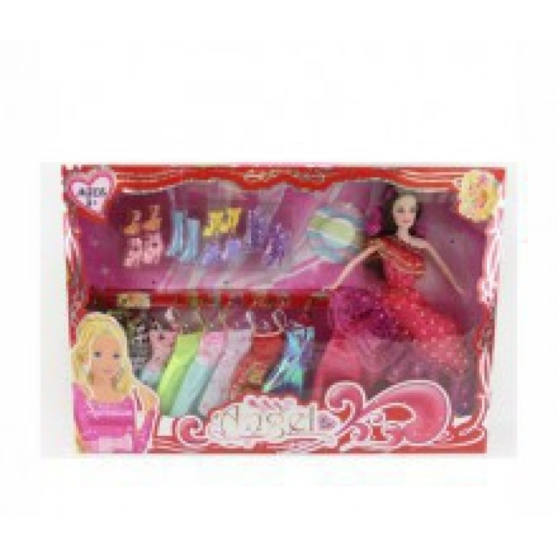 Лялька з вбранням: 9 суконь, взуття та капелюх.