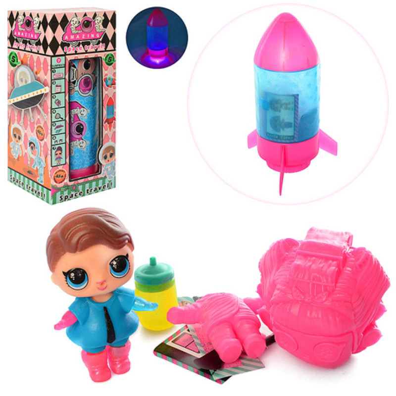 У наборі: лялька з аксесуарами, ракета, сосочка.