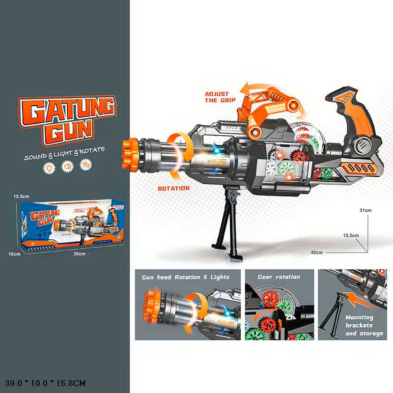 Пулемет з ручкою "Gatling gun" зі світлом і звуком (модель 731B) надає вашій дитині захоплюючий досвід ігрових баталій, роблячи їх яскравішими та захопливими.