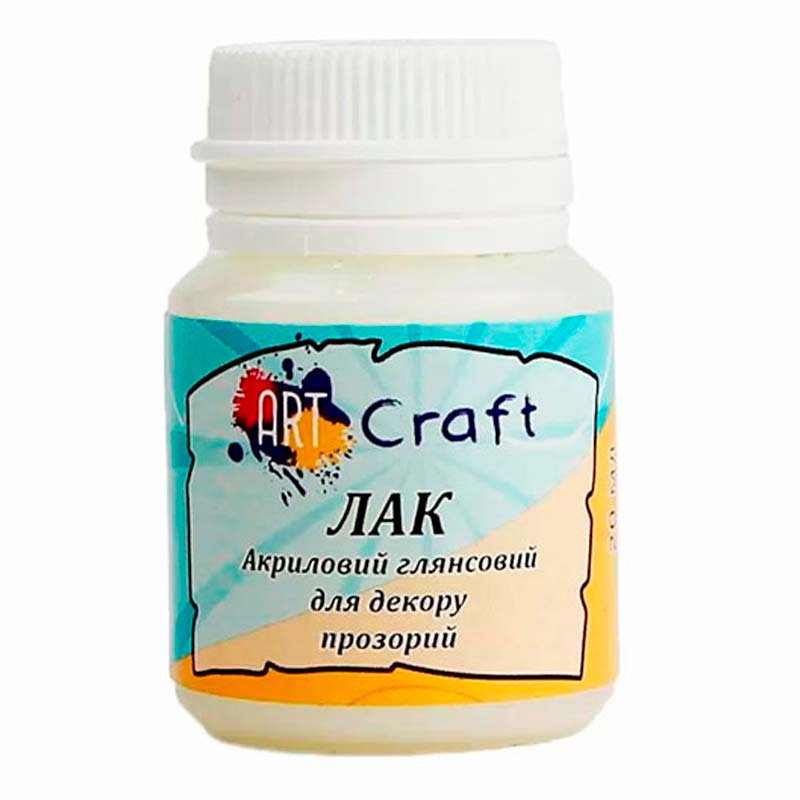 Лак акриловий глянцевий 20 мл. - акриловий лак ідеальний варіант для фінішного покриття мальовничих робіт, він утворює міцну водостійку плівку, завдяки чому: посилюється блиск поверхні; поверхня стійкіша до різких температурних перепадів; підвищується теплопровідність та вологостійкість; підвищується стійкість до механічних впливів; поверхня стійкіша до впливу ультрафіолетового випромінювання; поверхня надійно захищена від цвілі та згубного впливу мікроорганізмів. Об'єм 20 мл.
