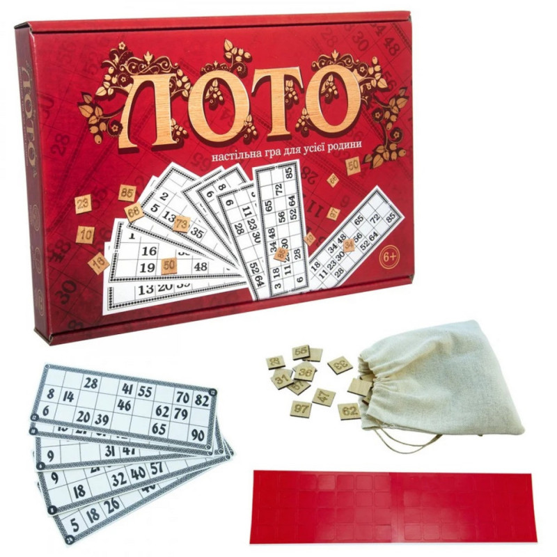 Гра "Лото з дерев'яними фішками" Strateg (30656) розвиває пам'ять і увагу. Замість звичних барилець, у цьому лото використовуються дерев'яні фішки з нанесеними номерами.