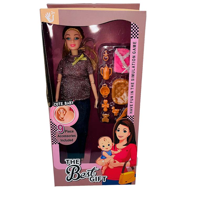 Лялька 29 см вагітна з аксесуарами 1183_Brown-Black