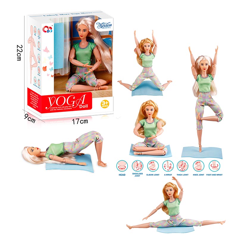 Гра з лялькою йогинею стимулює уяву, вчить рутині догляду за собою і заохочує до фізичної активності у формі веселих ігрових вправ. Дитина може вигадувати історії, відпрацьовувати пози йоги та вчитися заспокоюватися через розповіді й ритуали.