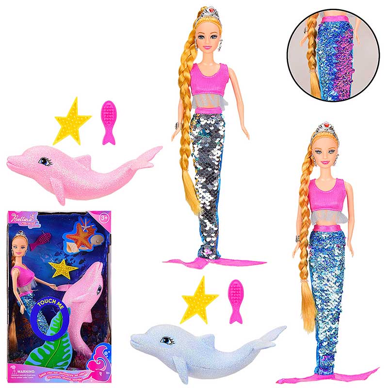 Лялька "Русалочка" 2 види, хвіст з паєтками, дельфін, гребінець