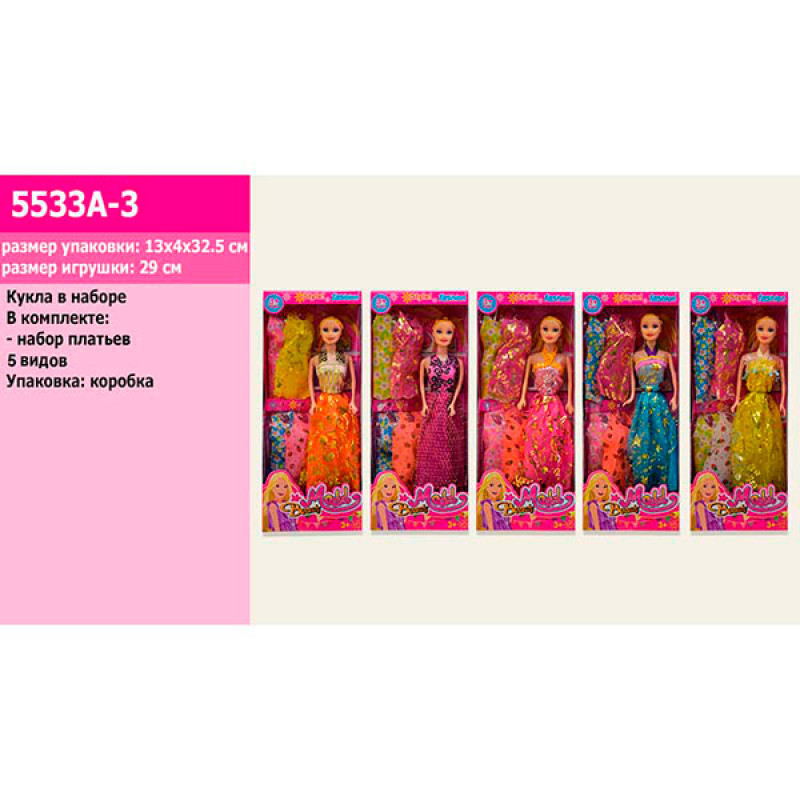 Лялька типу "Барбі" з набором суконь 5 видів 5533A-3