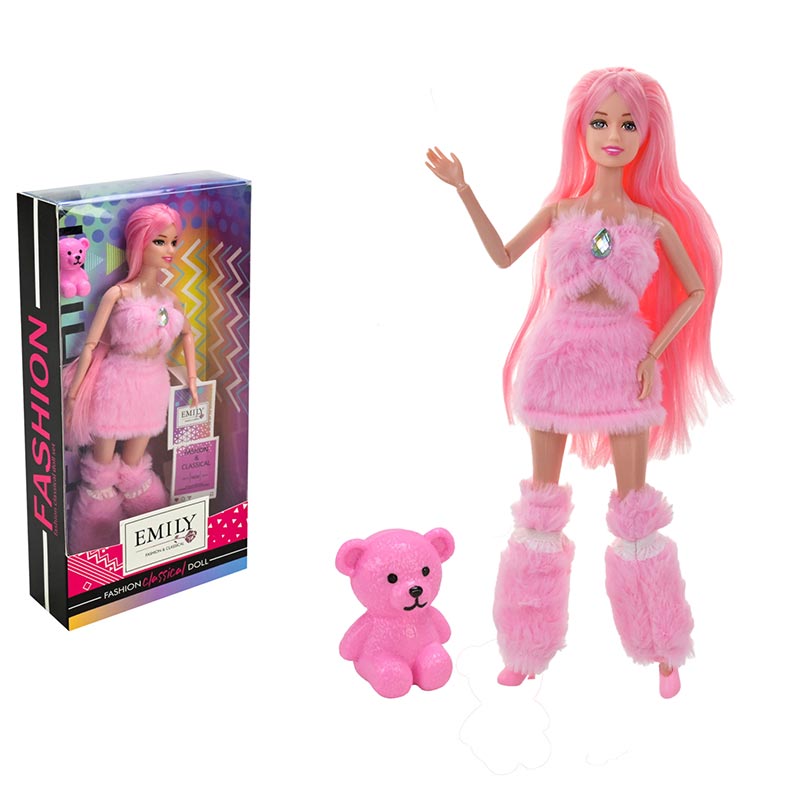Лялька з хутровим вбранням 29 см QJ139C_Pink